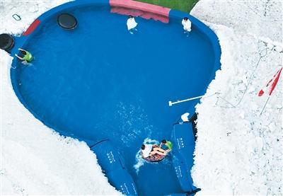 在辽宁沈阳,游客体验冰雪温泉。新华社记者 李 钢摄