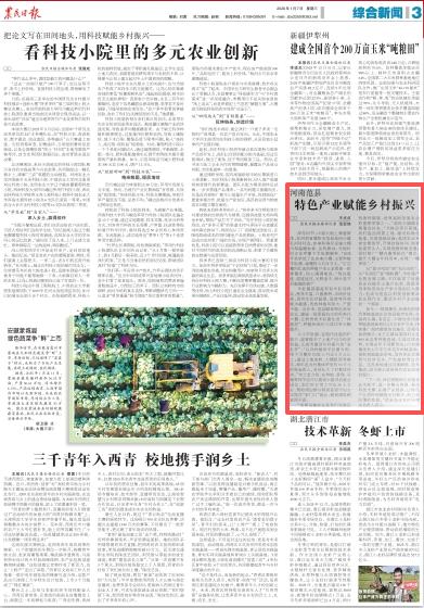 今日出版的《农民日报》报道了《河南范县:特色产业赋能乡村振兴》。