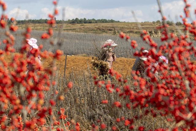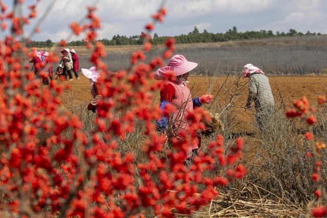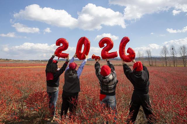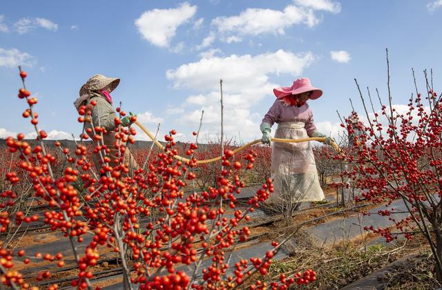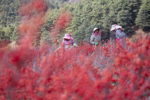 新年伊始,滇东大地寒意未消,曲靖市马龙区月望乡双龙村的2000余亩北美冬青种植基地却已是一片红火景象。漫山遍野的植株褪去绿叶,鲜红的果实密密匝匝挂满枝条,在冬日暖阳下熠熠生辉,宛如一串串红宝石点缀山间,吸引着省内外游客纷纷前来打卡留念,快门声与欢声笑语在花海中交织回荡。