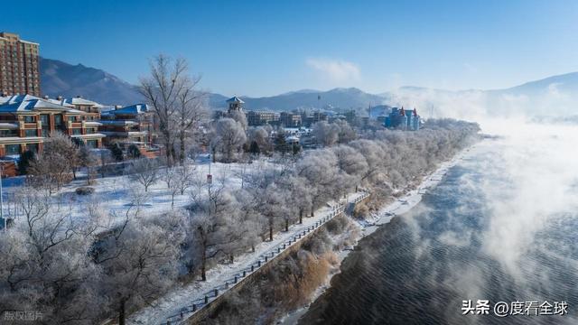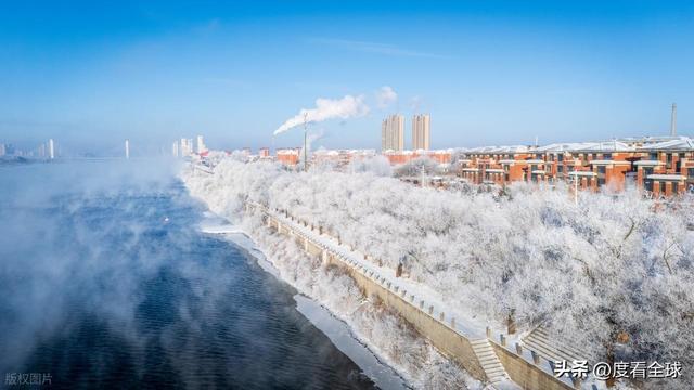 要读懂这场奇观,首先要从吉林市独特的地理与气候条件说起。雾凇的形成,需要两个看似矛盾却又缺一不可的核心要素:充足的水汽与极低的气温。在中国北方的冬日,低温并不罕见,但能在严寒中持续提供充沛水汽的地方,却寥寥无几。吉林市恰好占据了这份自然的馈赠。穿城而过的松花江,在冬季本该冰封千里,却因上游丰满水电站的存在,呈现出“一江寒水清,两岸琼花凝”的奇特景象。
