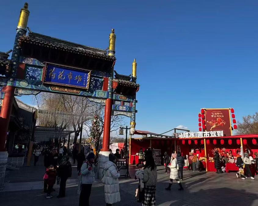 据悉,为保障游客的体验感,冰场每日将视冰面人流情况不定时采取限流措施。另外,冰场还与荷花市场新春市集联动,走在荷花市场步道上,“荷花吉市”热闹非凡,各种特色小吃、手工艺品琳琅满目,让游客在游玩之余品美食、挑好物,感受浓郁新春氛围。