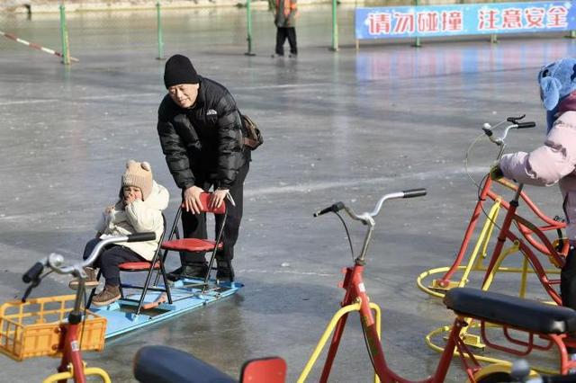 冰场开放前经过周密筹备,冰层厚度经专业机构检测,完全符合安全运营标准。为满足不同群体需求,公园配置75辆传统冰车及20辆冰上自行车,覆盖亲子互动、青少年娱乐、成年游客休闲等多元场景,让各类游客都能尽享冰上欢乐。