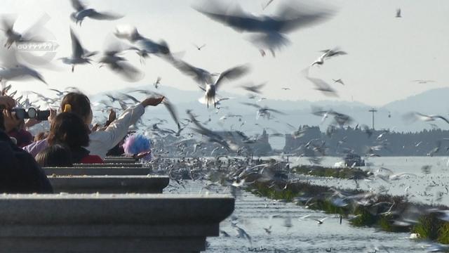 昆明鸟类协会秘书长 赵雪冰:“应该说是换了些区域,很多游客都到了滇池周边的湿地观鸥喂鸥,可能很多红嘴鸥就被分流到了这些区域去了。”