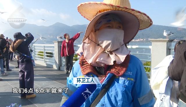 便民服务站 李师傅:“很多游客他们来这边不是很熟悉,有些公共厕所他们不知道,然后还有一些(观鸥)的地区不知道,我们就跟他们解答给他们指一下路。”