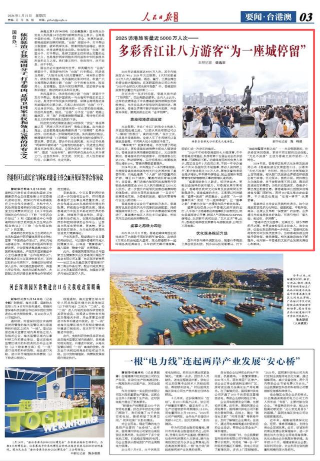 “香港中西文化荟萃、充满活力、城乡郊野咫尺之隔,世界美食纷呈且丰俭由人,治安良好,这些优势正获得进一步肯定。”香港特区政府财政司司长陈茂波表示,当前香港旅游业持续升级转型、做优做强,相关基建设施也不断提升。他对新一年香港的文旅产业发展充满信心和期待。(本报记者 柴逸扉)