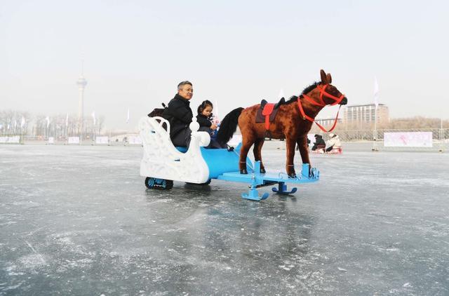 冰场位于公园东湖南岸,以东湖南码头为界划分为东、西两区,1400辆各式冰上娱乐设施可满足不同年龄段游客的需求。其中,西区主打经典冰上项目,既有传统的冰车与冰上自行车,也有让孩子们欢呼雀跃的“雷霆战车”;东区除了传统冰车外,还增添了卡通电动冰车、憨态可掬的狗拉雪橇冰车,以及特意为马年推出的马拉冰车等项目,更适合亲子互动与趣味体验。两个冰场采取分区售票、独立运营模式,门票仅限指定冰场使用。