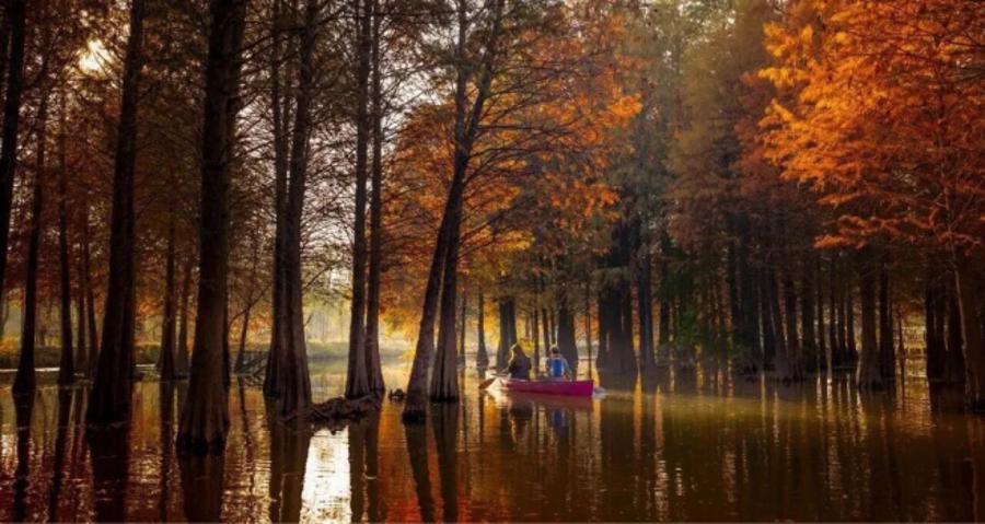 想赏水森林?来西沙湿地公园就对了!这里的水森林主要为人工种植的旱柳、落羽杉、池杉、中山杉、重阳木等。其中,颜色最艳的要属落羽杉,似羽毛状的叶丛极为秀丽,入冬后叶子渐渐变为深红色,在湖水的倒影下更是楚楚动人。