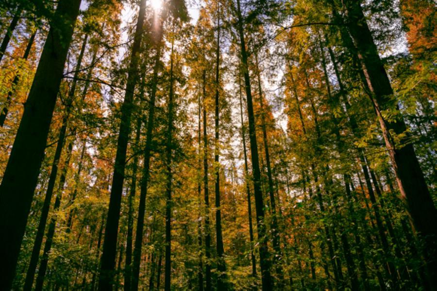 让我们一起走进这片绚烂的杉林,遇见初冬崇明最静谧而浓烈的一抹颜色。