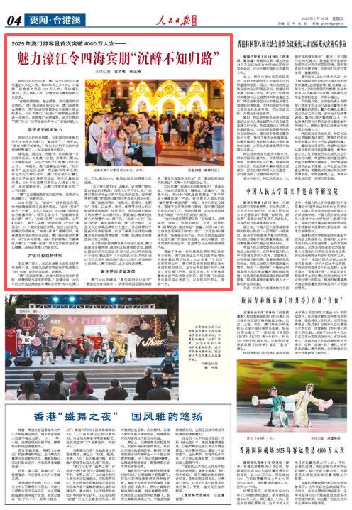 得益于中央一系列惠澳政策和特区政府有力施政,澳门旅游业正实现由复苏性增长向高质量发展的转型。2026年是“十五五”规划开局之年,澳门特区政府明确要主动对接国家规划建议,立足世界旅游休闲中心建设,结合澳门所长、湾区优势,扩大更高质量的旅游产品和服务供给,提升澳门文旅品质内涵与综合竞争力,以实现百尺竿头、更进一步。(本报记者 富子梅 任成琦)