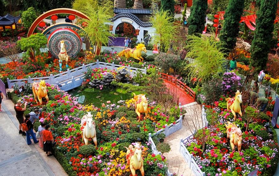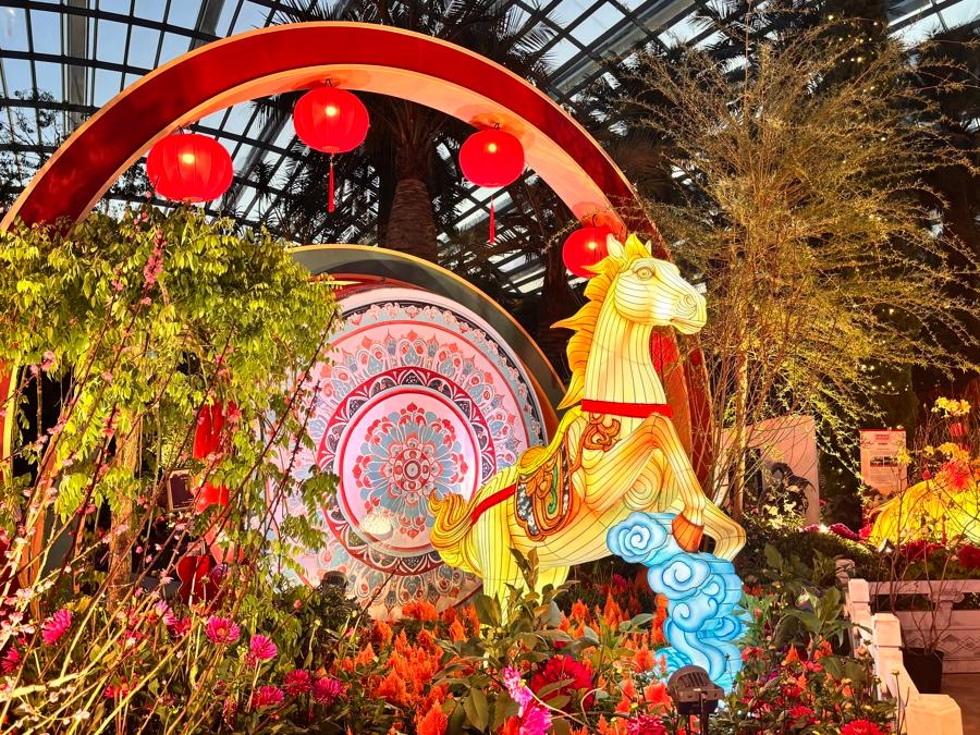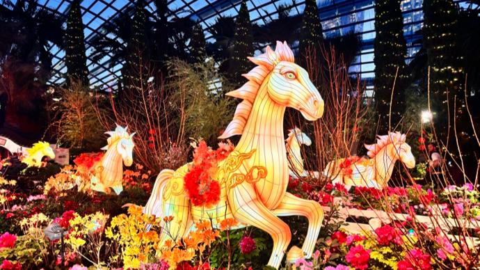 原标题:《新加坡滨海湾花园春节花展开幕,花马献瑞,还有一景源自上海“申园”》