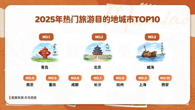 2025年,民宿市场呈现平稳增长趋势,实现供需双增。1月16日,木鸟民宿发布的《2025年度民宿消费报告》显示,2025年最受欢迎的10个民宿消费目的地依次为:青岛、北京、威海、南京、重庆、成都、长沙、杭州、上海、西安。