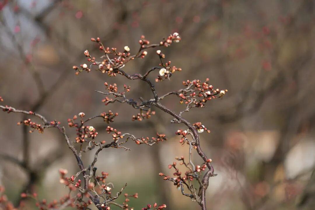 而在梅园,另有一番景致令人惊喜。龙游梅、朱砂梅等早梅品种已零星绽放,浅粉、洁白的花朵点缀枝头,吸引了不少游客驻足观赏。“梅花一般是两月初开,这个时候我觉得开得挺早的。”有游客感慨道。
