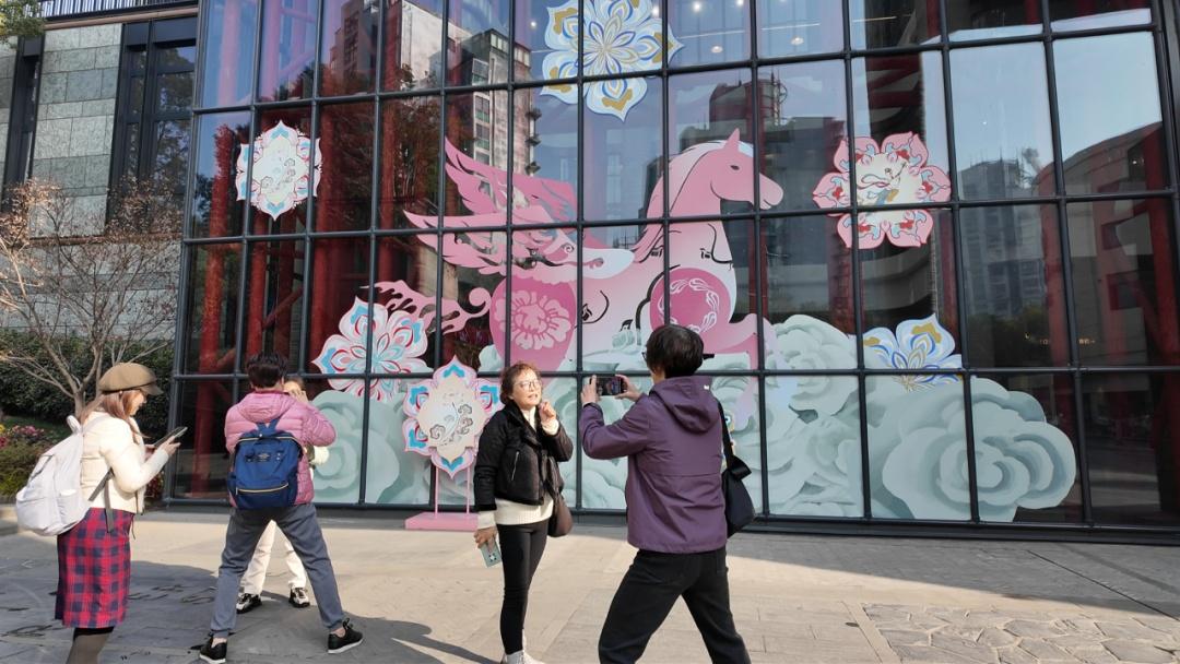 “我带小孩经常来,这次的设计既有传统韵味,又很新颖,和天安千树的氛围很契合。”推着婴儿车的市民陈晨说。另一位市民鲁海杨则表示:“画面色彩温馨,让人忍不住想记录下来。”不少银发族也结伴前来,将这里作为“美育课堂”,切磋拍摄技艺,成为一道动人的年节风景。