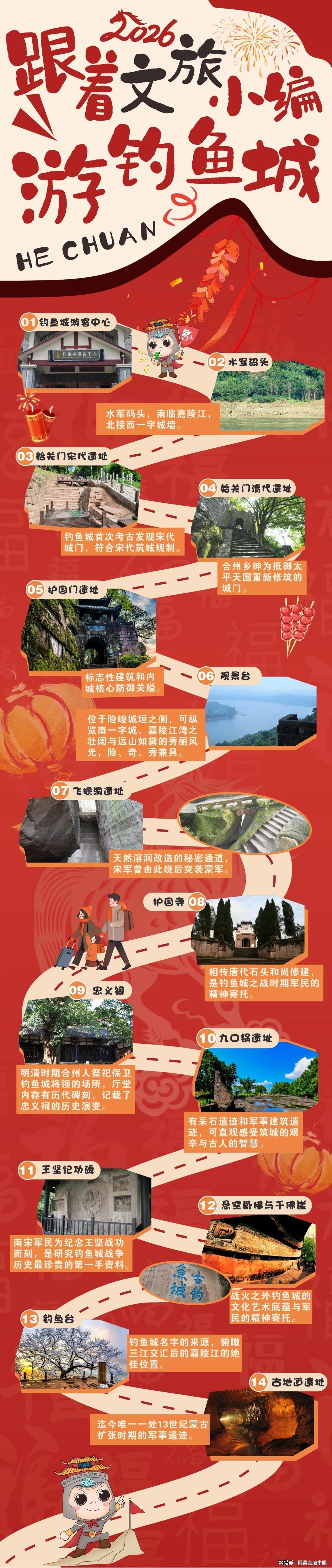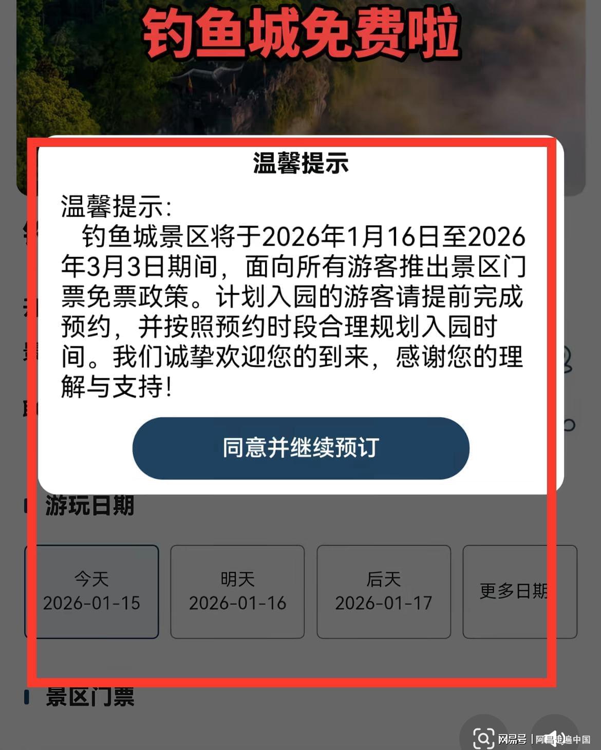 合川文旅发布从2026年1月16日起到2026年3月3日(也就是农历正月十五),(一共45天),合川钓鱼城景区对全国游客免门票,景区停车场也免费,游客只需要预约就可以,无需集赞转发朋友圈。