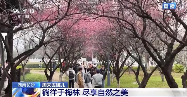 总台记者 傅蕾:在湖南长沙洋湖国家湿地公园,有不少市民游客趁着周末前来游玩。有人俯身轻嗅花瓣的芬芳,还有人举着相机与梅花同框,或者牵着孩子的手追逐飘落的花瓣,享受这份自然之美。