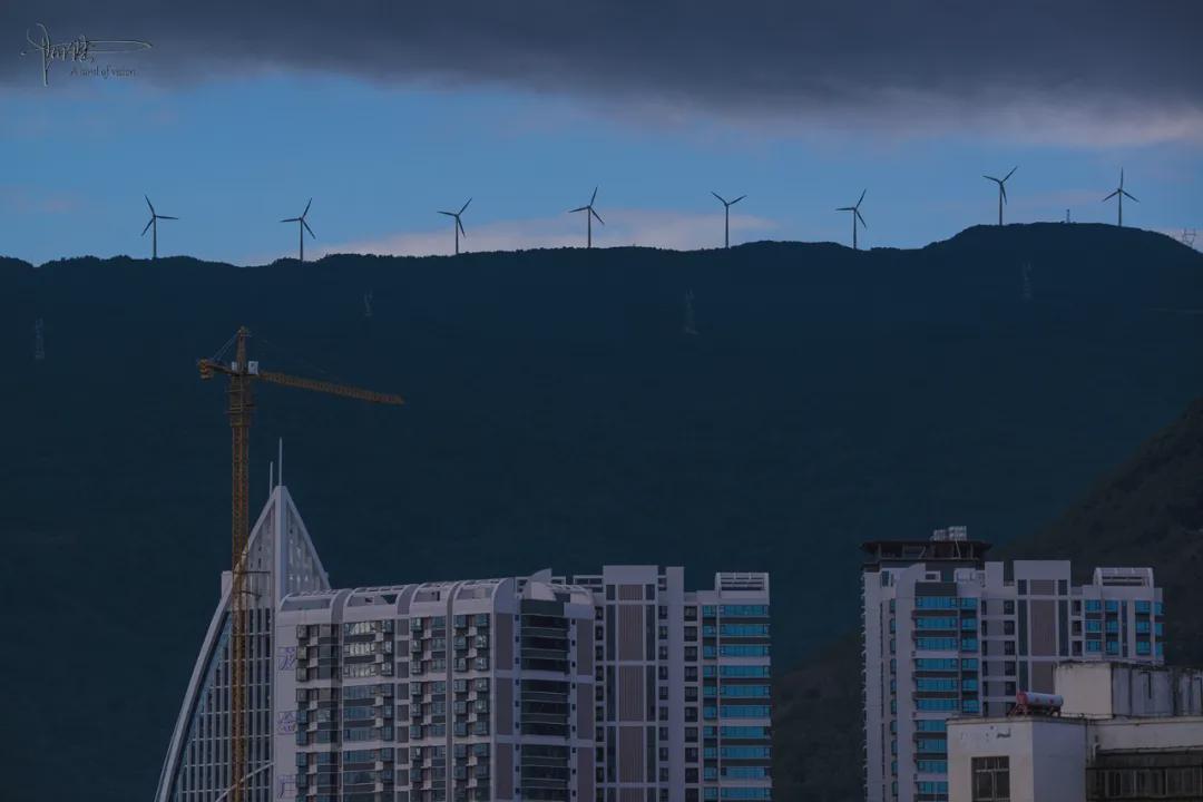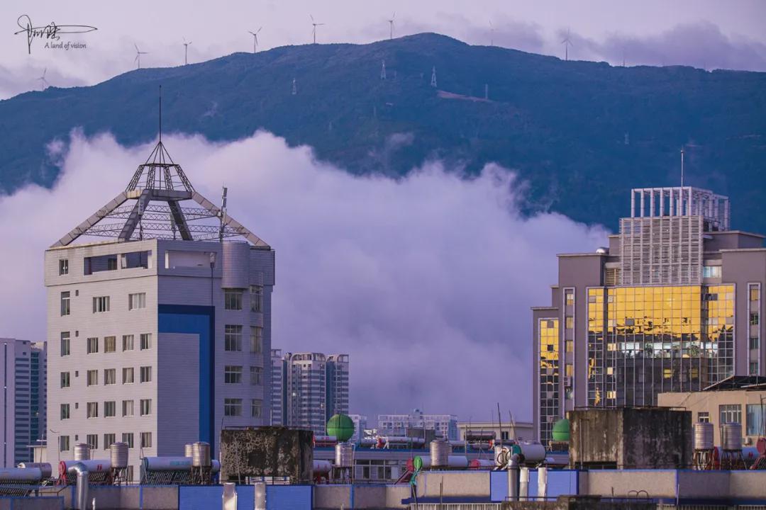 这时再往窗外的左边望去,定格的画面似乎挺安静,其实不然,透过层层叠叠的房屋建筑和高楼,“风起云涌”俨然如近在咫尺一般,场面是相当震撼。