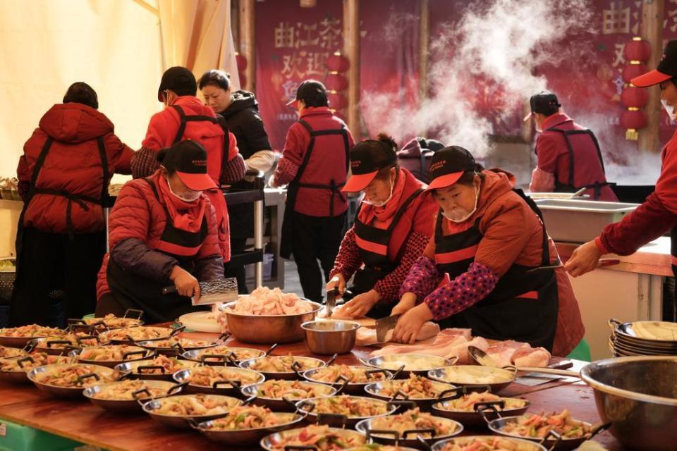 2026年1月15日,四川省资阳市安岳县通贤镇帽石村举办了一场充满乡土温情的免费刨汤宴活动,吸引了上万名来自全国各地的客人到村深度体验原汁原味的乡村生活。 杨康忠 摄(人民图片网)