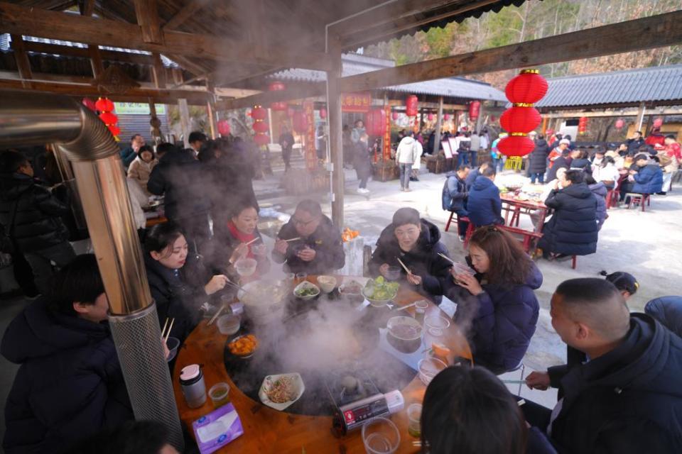 2026年1月10日,湖北省恩施土家族苗族自治州巴东县信陵镇土店子村,村民与游客欢聚一堂,吃刨汤、话团圆。焦国斌 摄(人民图片网)