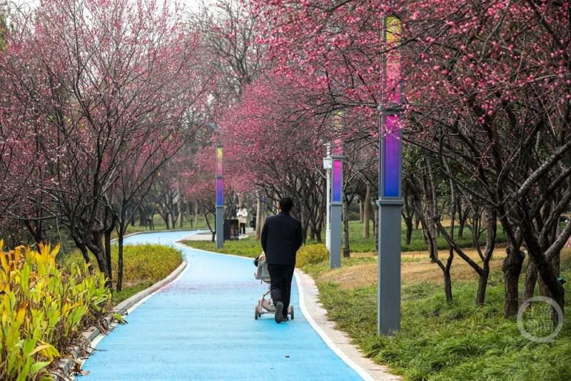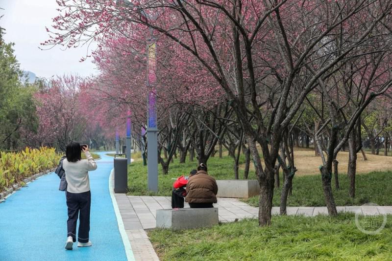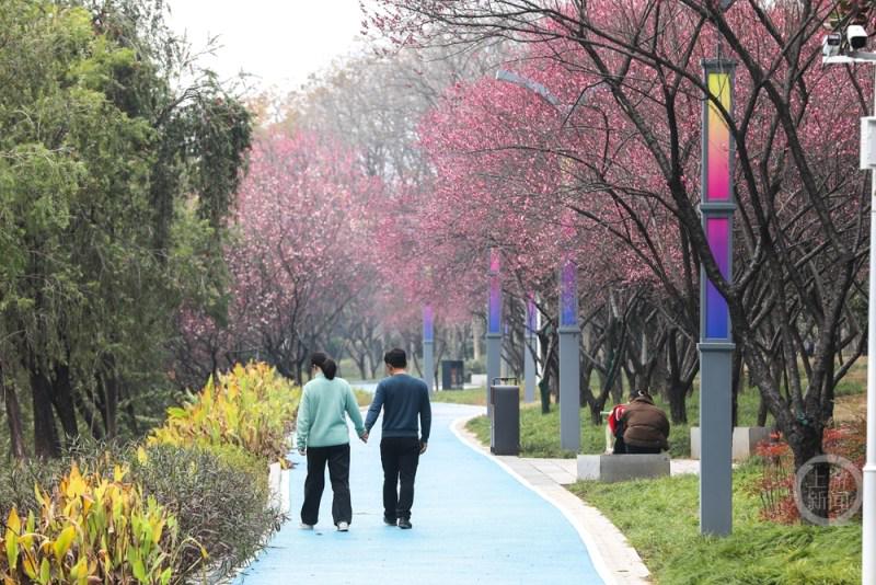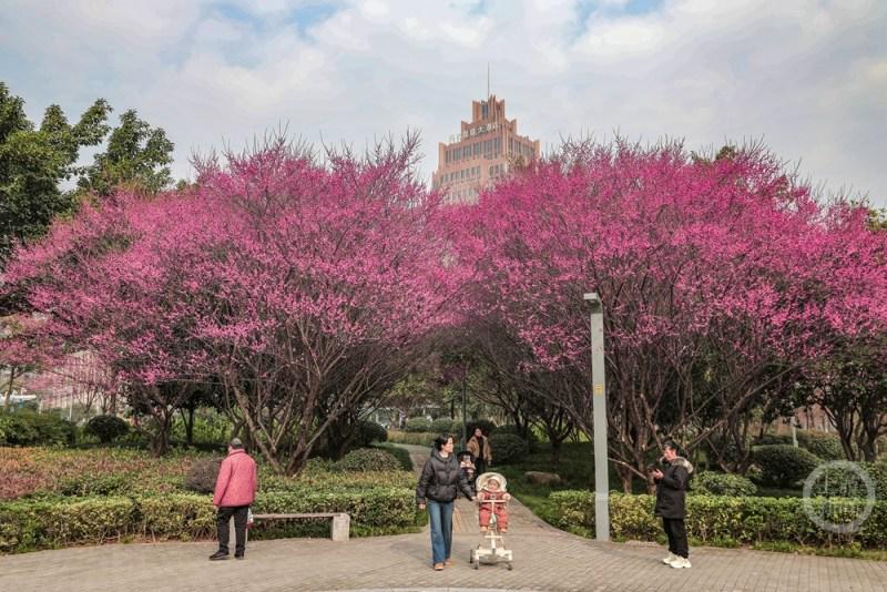 1月18日,重庆市奉节县滨河公园红梅绽放,粉红的花朵挂满枝头,散发出浓郁的芳香,为寒冷的冬季增添了一抹别样色彩,吸引众多游客和市民前来观赏游玩。