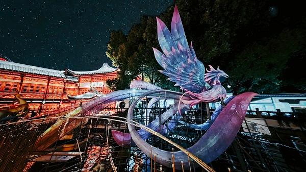 本届灯会在空间布局和主题内容上实现历史性升级。核心亮点在于将灯会从单一的豫园民俗艺术灯区,扩展至覆盖大豫园片区的六大主题灯区,形成一条从豫园延伸至BFC外滩的连贯观灯动线。