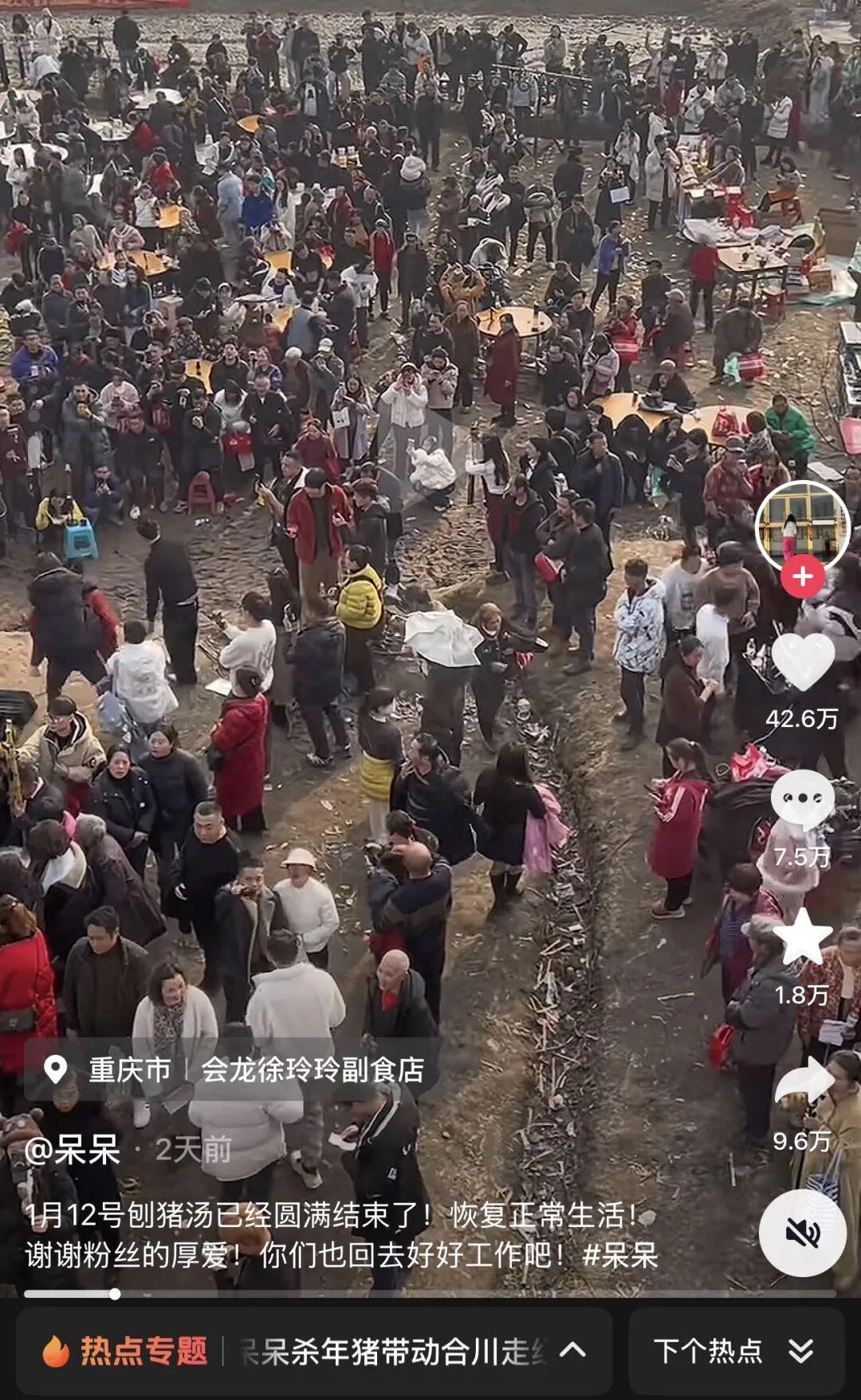 合川文旅就是一个典型的例子,呆呆的视频刚火不到24小时,当地文旅部门就带着钓鱼城景区门票、合川桃片糕赶到现场,一边帮着招呼游客、搭手干活,一边连夜梳理出城区及镇街的"刨猪汤打卡点",附上地址和联系电话,让自发而来的游客有处可去、有景可逛。