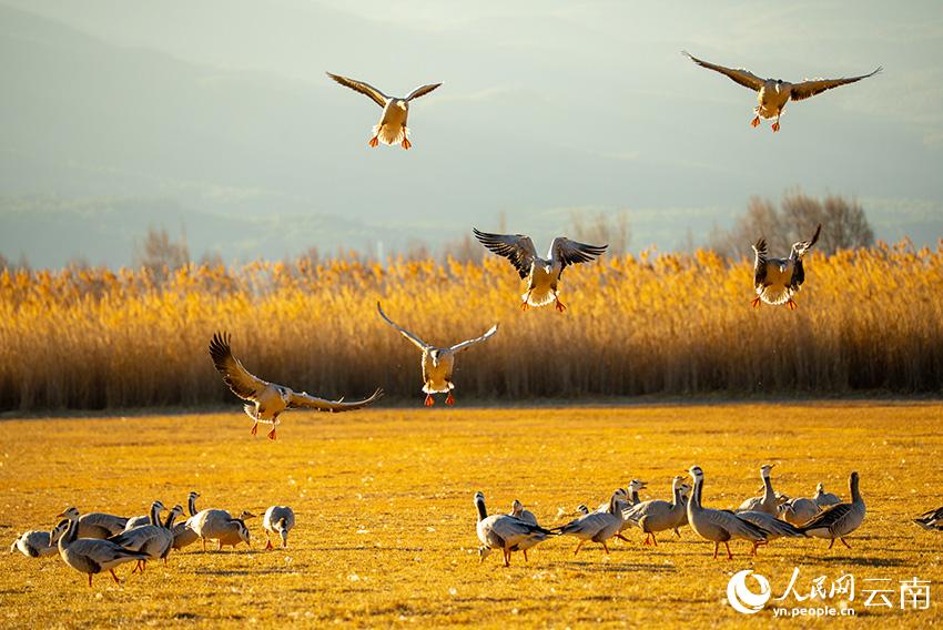 人民网丽江1月20日电 (记者蔡树菁)冬日,云南丽江拉市海湿地迎来一批特殊的“旅居客”。金色芦苇与湛蓝湖水交相辉映,数万只越冬候鸟在此休憩、嬉戏,成为拉市海的季节限定风景。