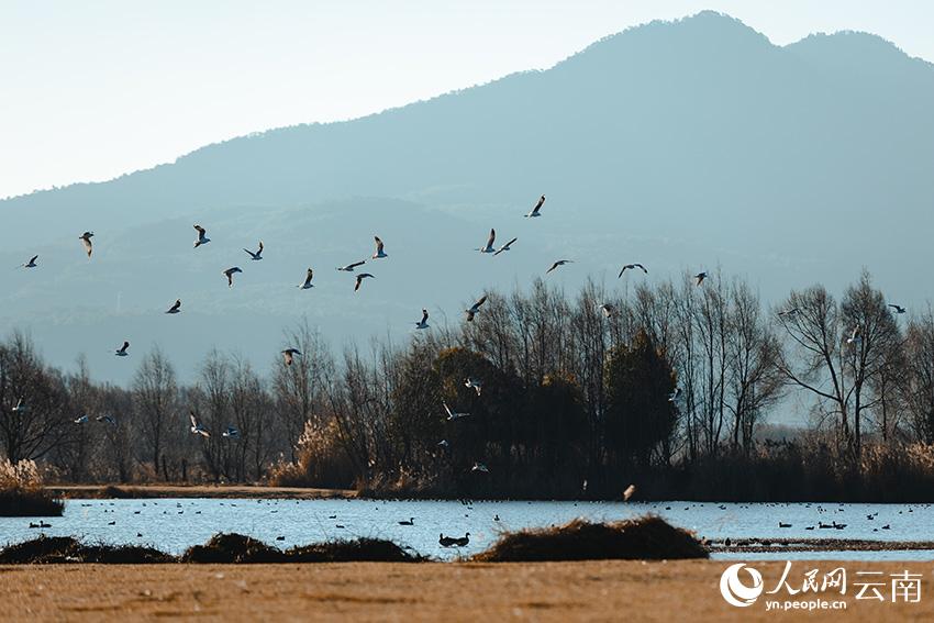 云南丽江拉市海湿地迎来越冬候鸟最佳观赏季。韩学海摄