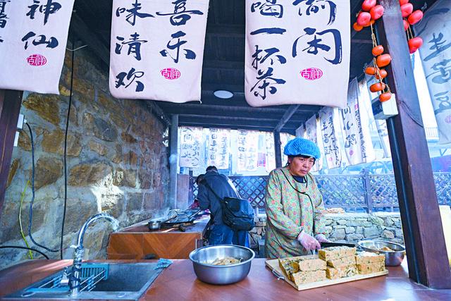 “栗椿别苑”民宿的厨师在制作地方美食。
