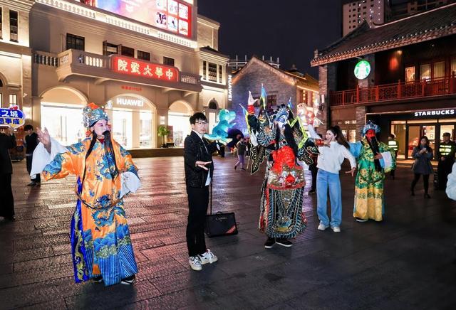 当晚,主题快闪巡游在南宁三街两巷精彩上演。重庆市相关区县的演员身着特色服饰,欢快的旋律、灵动的舞姿与古色古香的街区相映成趣,吸引不少南宁市民和游客驻足观看、拍照打卡。