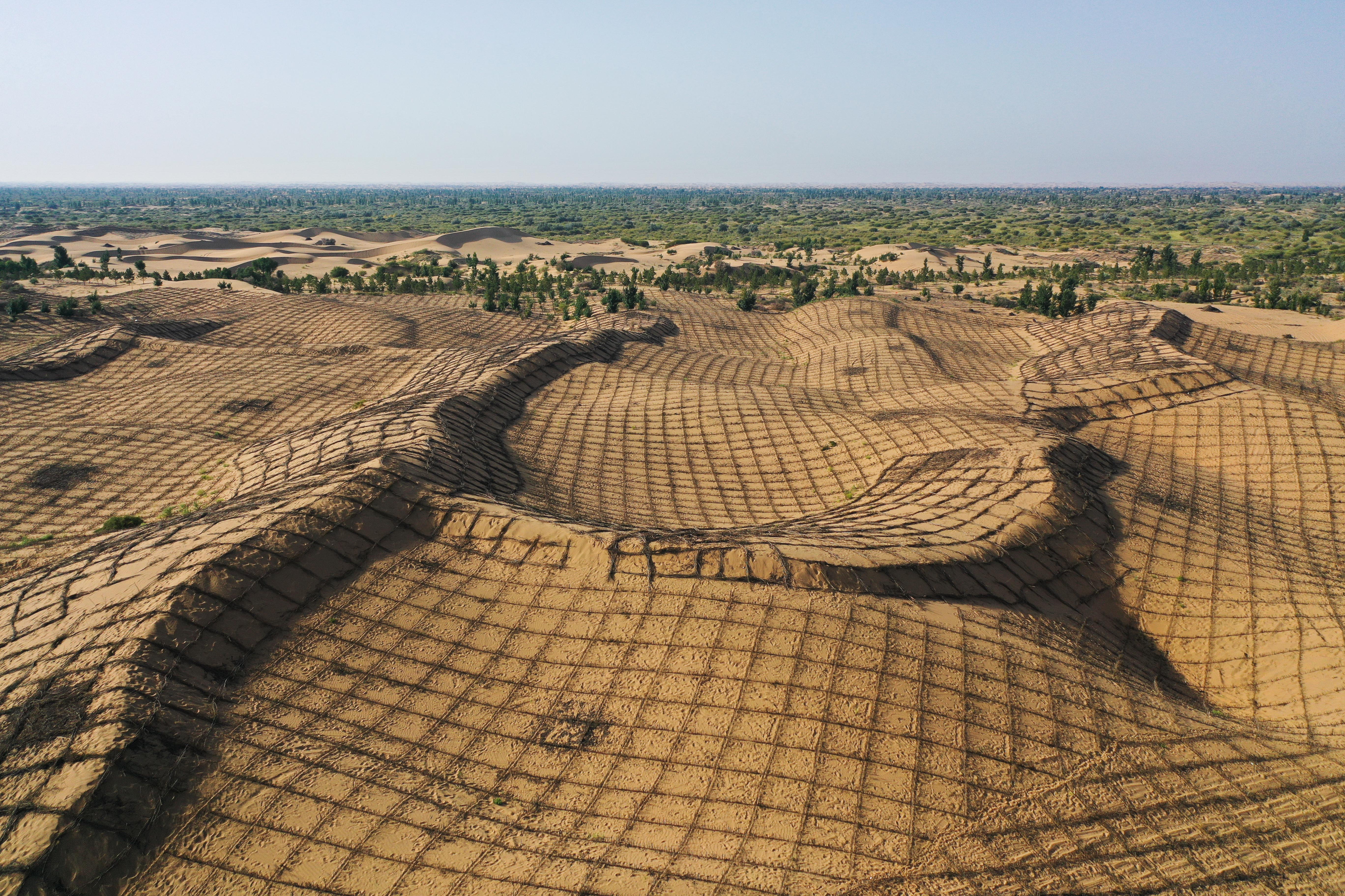 这是2025年9月12日拍摄的正在治理中的库布其沙漠。 新华社记者 李志鹏 摄