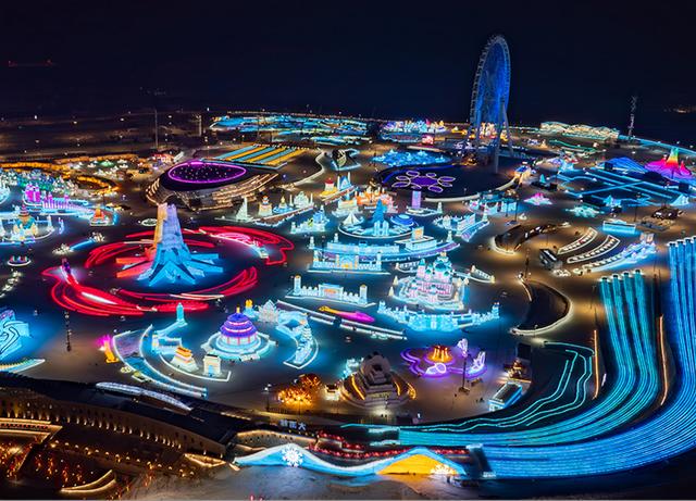 哈尔滨冰雪大世界夜景 图源 哈尔滨冰雪大世界官网