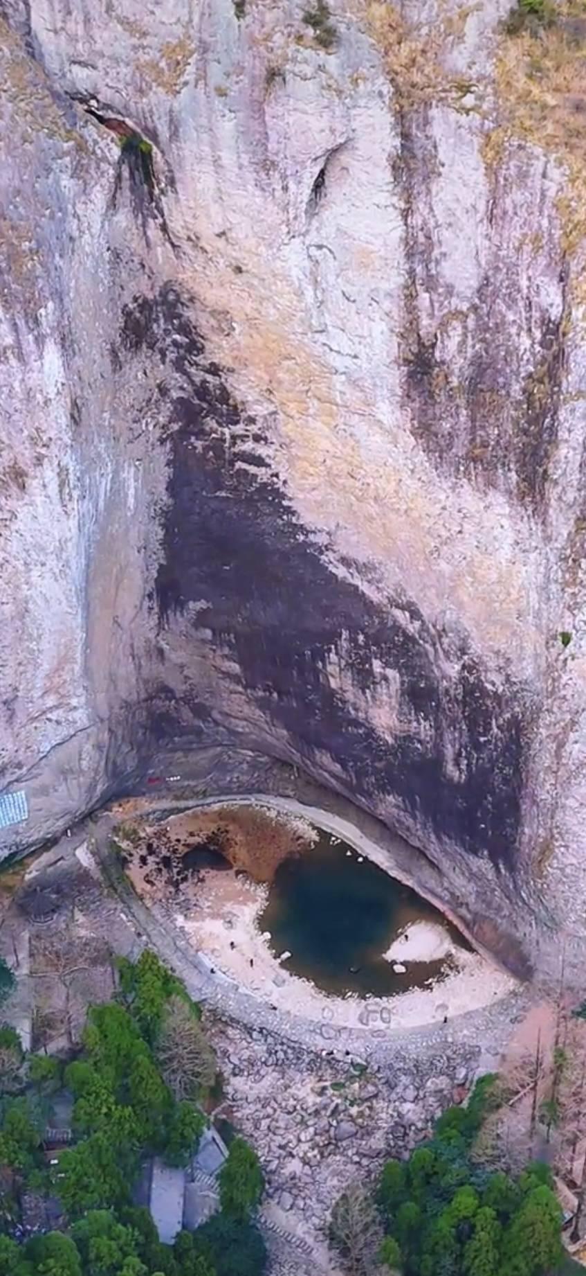 近日,一段浙江温州雁荡山大龙湫瀑布的航拍视频在网上火了。视频中,裸露的潭底岩壁与残留的潭水形似一只眼睛,眼睑轮廓由层层页岩堆叠而成,有网友表示,开“龙眼”了,还是双眼皮。