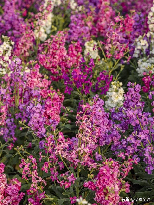 一月下旬的上海,尚未褪去冬日的清冽,虹口区北外滩东岸绿地却已被一片绚烂花海提前唤醒。约14000株高杆紫罗兰在此竞相舒展枝叶,玫红的热烈、淡紫的温婉、雪白的纯净、樱桃粉的俏皮,各色花影交织成毯,顺着滨江岸线绵延铺展。微风掠过,花枝轻颤,花香裹挟着江风漫过步道,对岸陆家嘴的摩天楼宇在花雾中若隐若现,玻璃幕墙反射的光影与花海交融,构成一幅自然与现代共生的城市画卷。