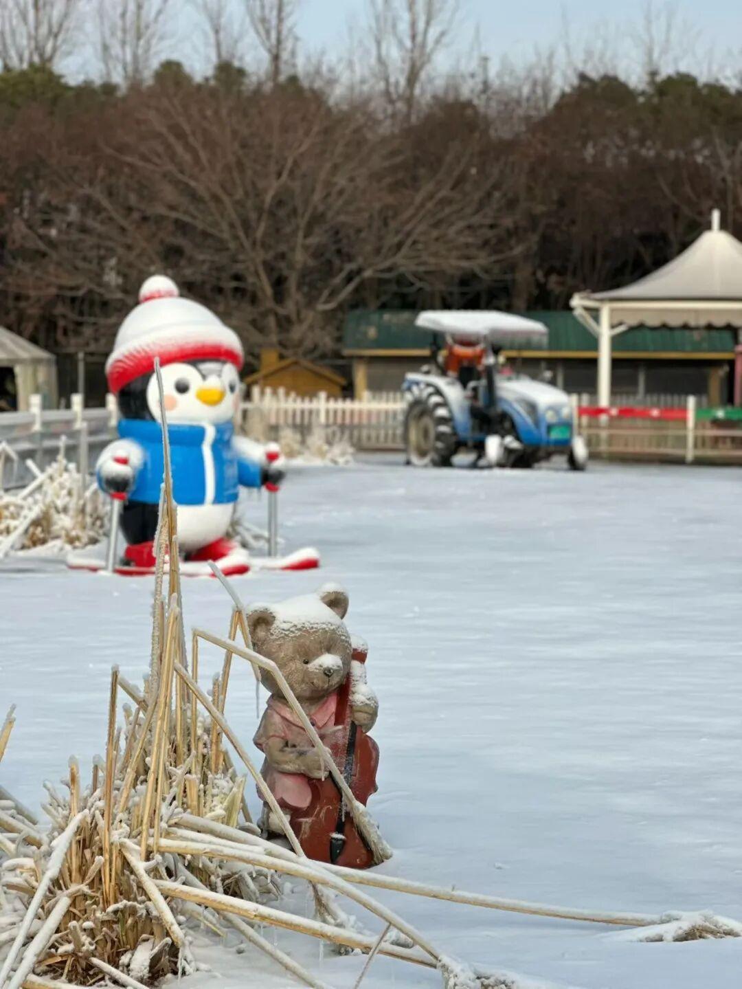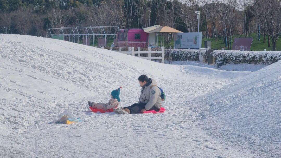 走进山阳田园,仿佛一秒穿越到冰雪世界。尽管两片人工雪场规模不大,却充满了纯真的冬日趣味。草坪覆盖上了一层积雪,孩子和家长一同在雪地里追逐嬉戏,沉浸式体验这份属于南方的“限定版”雪趣。