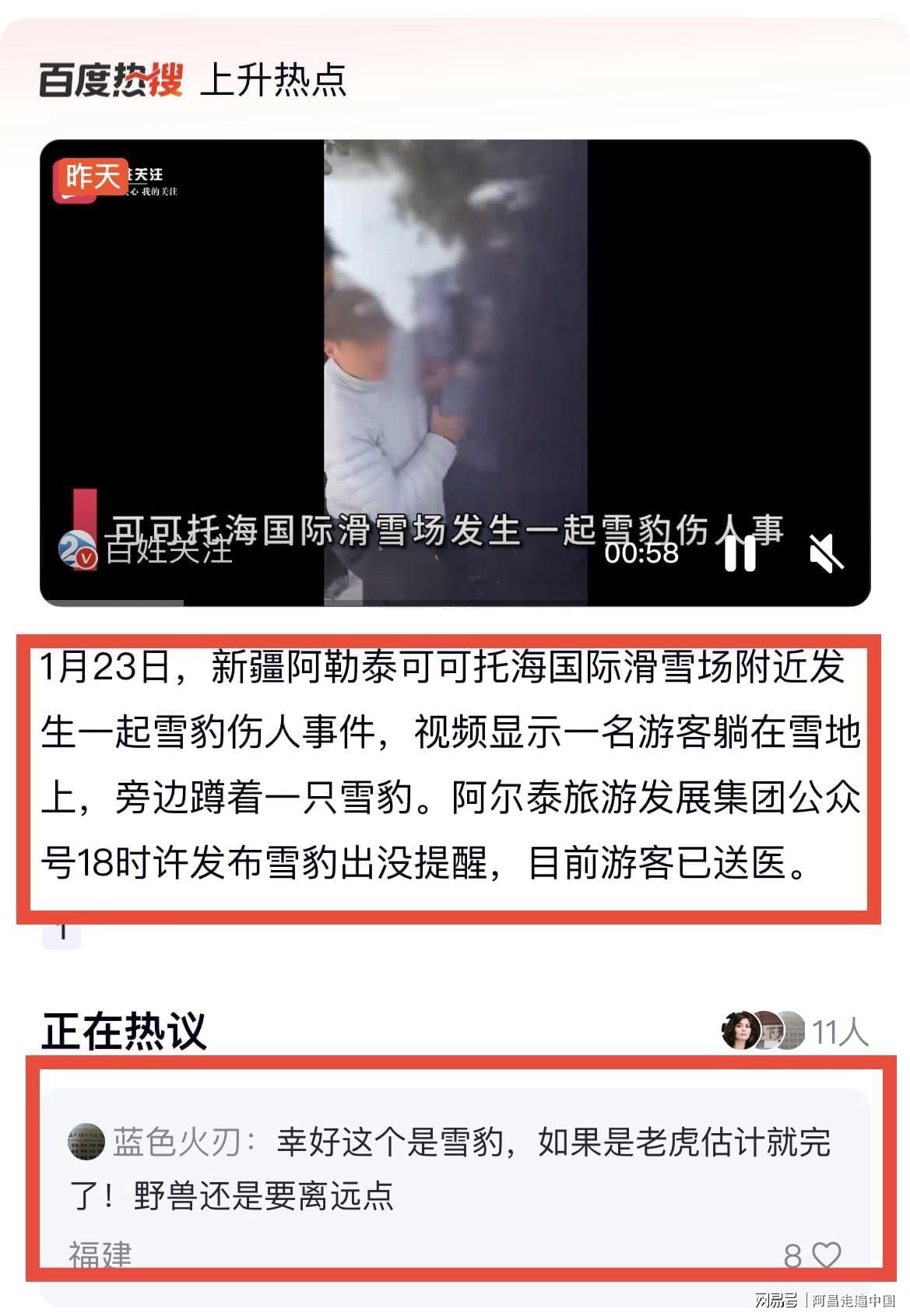 你对阿勒泰可可托海宝石沟游客被雪豹伤人有何看法?欢迎留言讨论,关注我每天分享不同的旅行世界。 #新疆可可托海发生雪豹伤人事件#