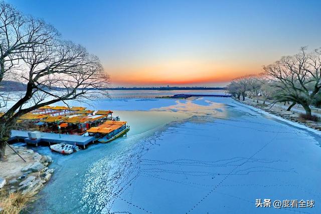 雪是颐和园最好的滤镜,它以最纯粹的白色做减法,剥离了平日里的喧嚣与色彩冗余,让园林的骨架之美愈发清晰。往日里碧波荡漾的昆明湖,此刻被一层厚薄不均的积雪覆盖,靠近岸边的冰层凝结成规整的白玉肌理,湖心未完全封冻的水面泛着淡淡的微光,雪花落在上面瞬间消融,留下一圈圈转瞬即逝的涟漪。