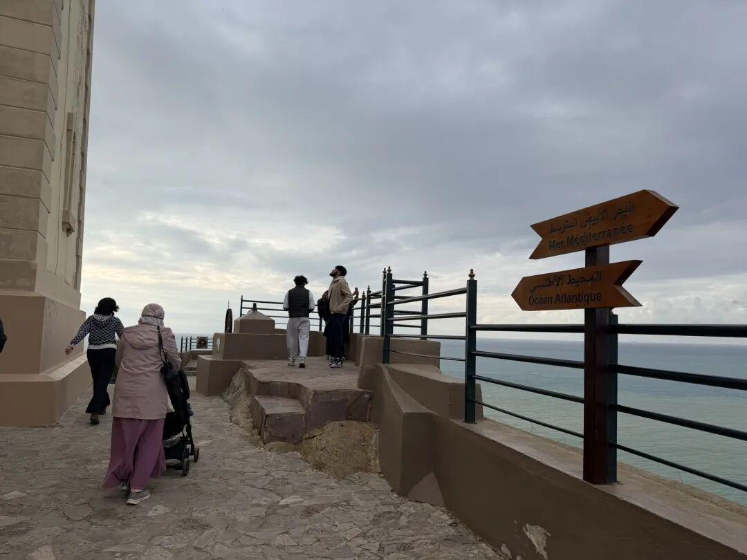站在灯塔之下,最令人震撼的莫过于“一脚踏两洋”的地理奇观。两块分别用阿拉伯语和法语标注“大西洋”与“地中海”的木牌,清晰划分了两大洋的界限。向东望去,地中海的海水澄澈温润,波澜不惊,宛如一块静谧的蓝宝石;向西远眺,大西洋则波涛汹涌,浪涛拍岸,尽显雄浑壮阔,两者在狭窄的海峡中交汇,因盐度、洋流的差异形成隐约可见的分界线,构成大自然的奇妙画卷。天气晴好时,极目远眺还能望见西班牙南端的海岸线,让这片海岬成为连接欧非大陆的视觉纽带。更添传奇色彩的是,这里还流传着希腊神话中大力神赫拉克勒斯的传说——斯帕特尔角被认为是“海格力斯之柱”的南端起点,传说中赫拉克勒斯正是在此开辟通道,分隔了欧非大陆,让这片土地成为古代人心目中“已知世界的尽头”。