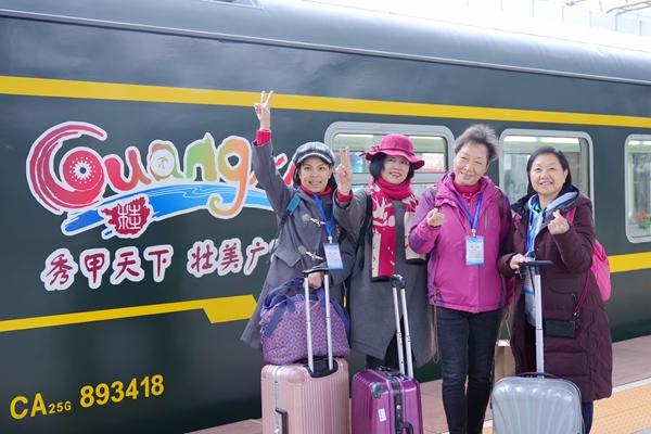 近年来,广西凭借宜居气候与绝美风光,成为众多游客心中的“打卡胜地”。国铁南宁局依托以南宁为中心的“1—3—6小时”高铁交通圈,开展“广西高铁漫游记”文旅推介活动,打造独具广西特色的“桂行天下”旅游专列,为推动广西“铁路+旅游”融合创新发展提供了运输保障。自去年底广西银发旅游年启动以来,国铁南宁局已推出5条去往南丹、百色、巴马、靖西等旅游城市的精品线路,目前南丹、融水方向两趟专列已经成功开行。