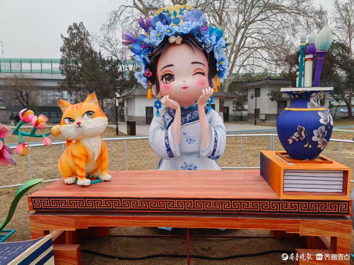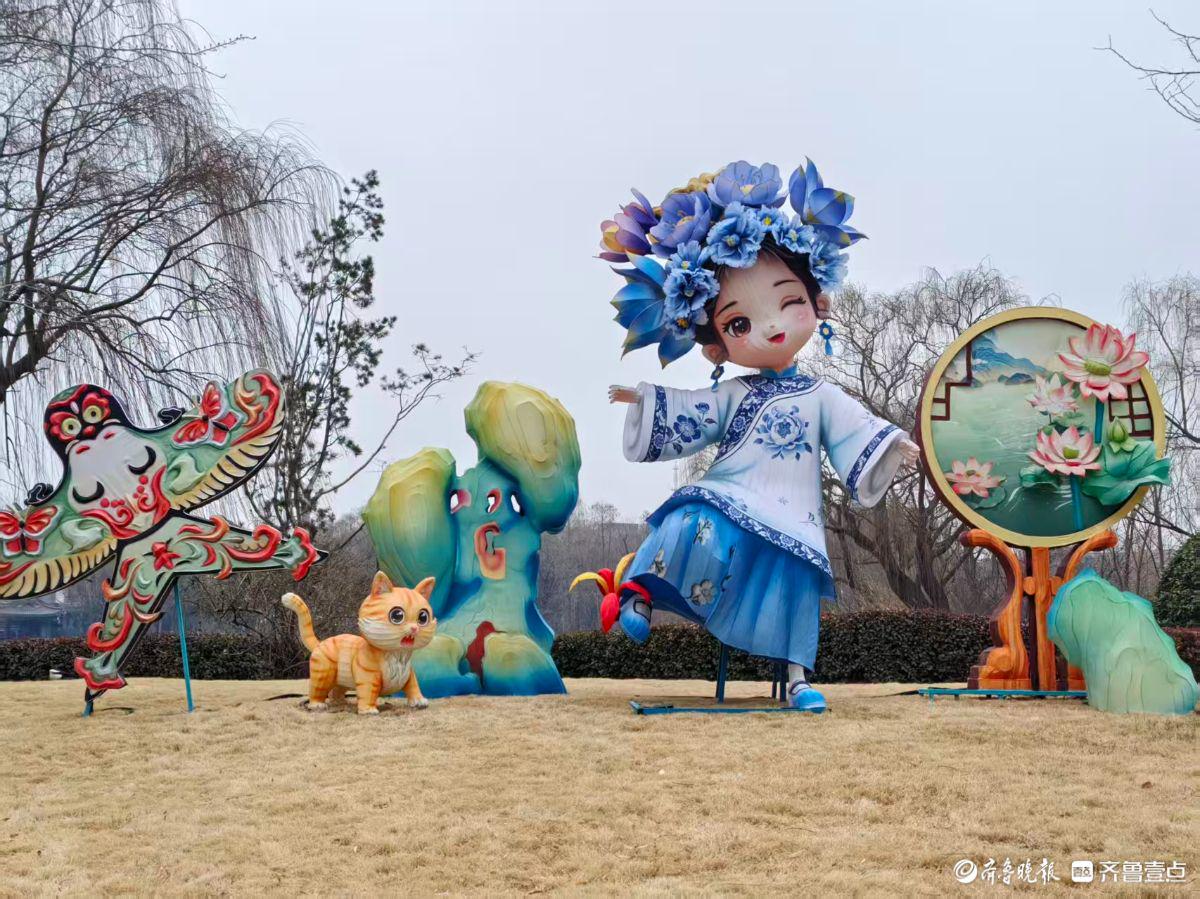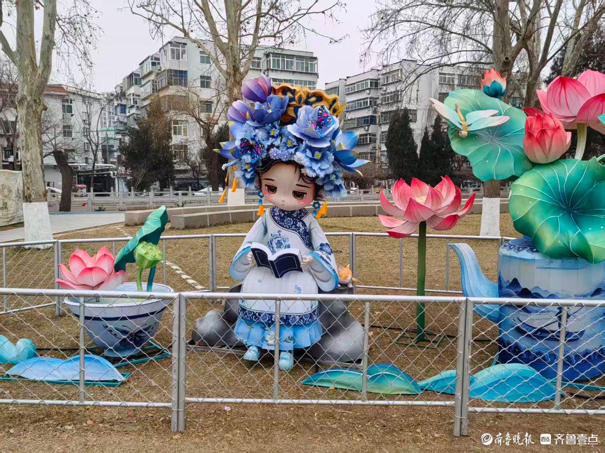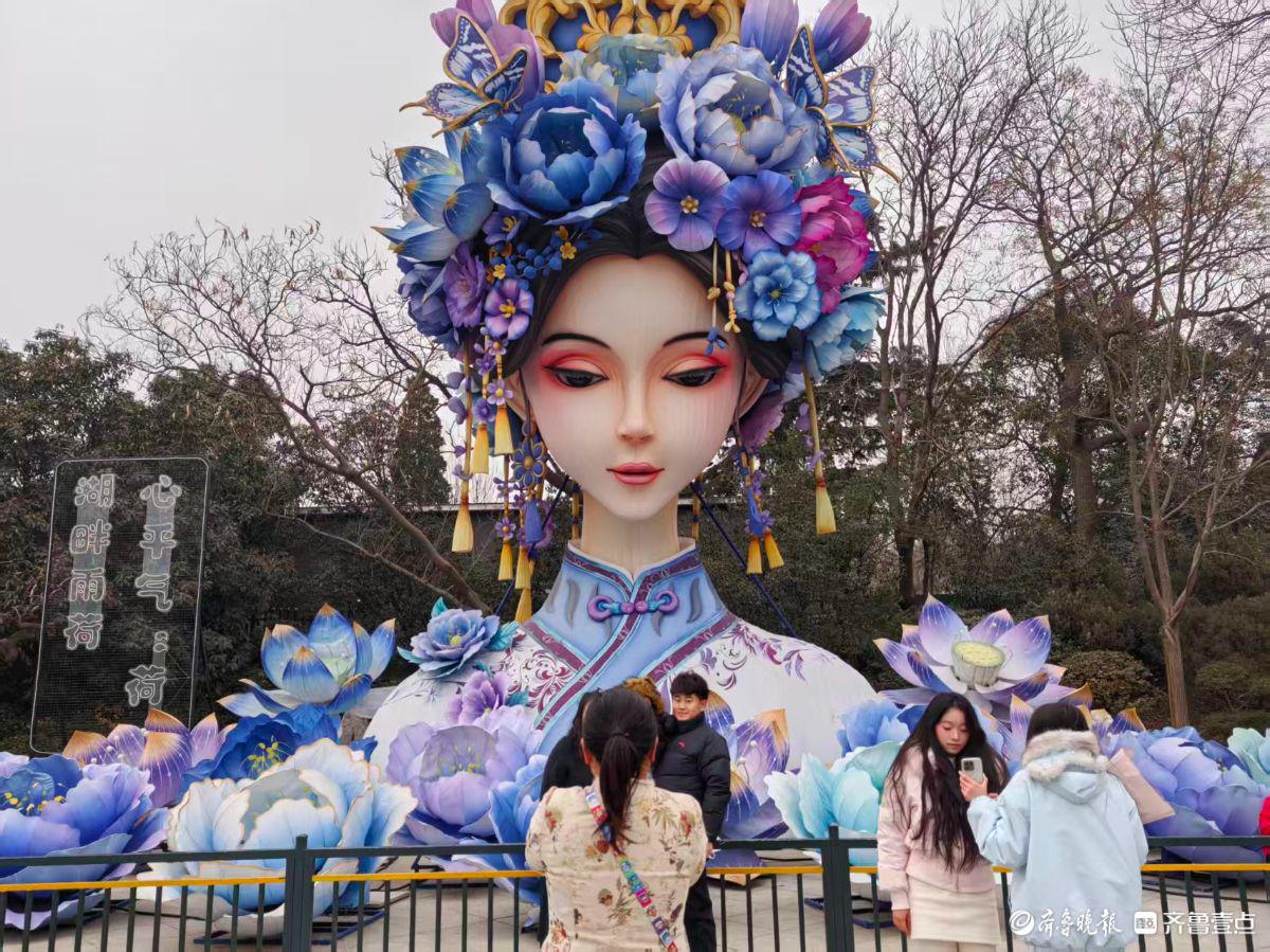 1月24日,济南大明湖景区内,多组“Q版雨荷”主题花灯正式亮相。蓝白青花的典雅裙装,绒红暖帽的俏皮冬装相映成趣,雨荷或捧书静读,或提笔画虎,或对镜梳妆,憨态可掬的模样搭配茶壶,荷花等泉城元素,将传统人文底蕴与现代卡通趣味融合,引得市民游客纷纷驻足拍照。 王平 摄