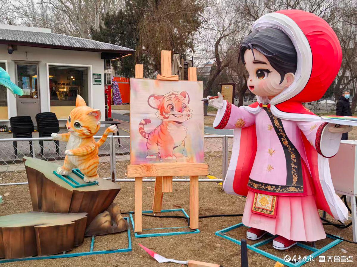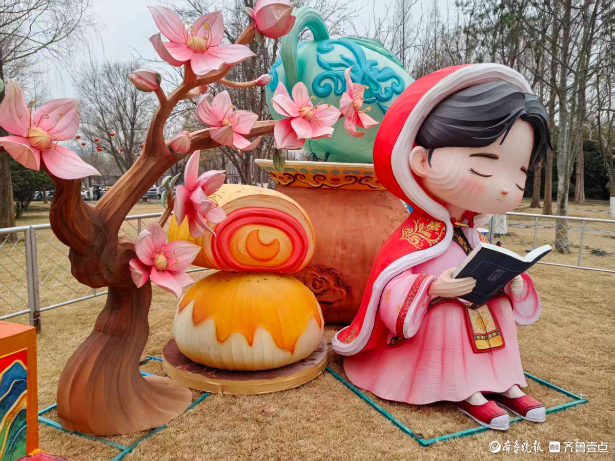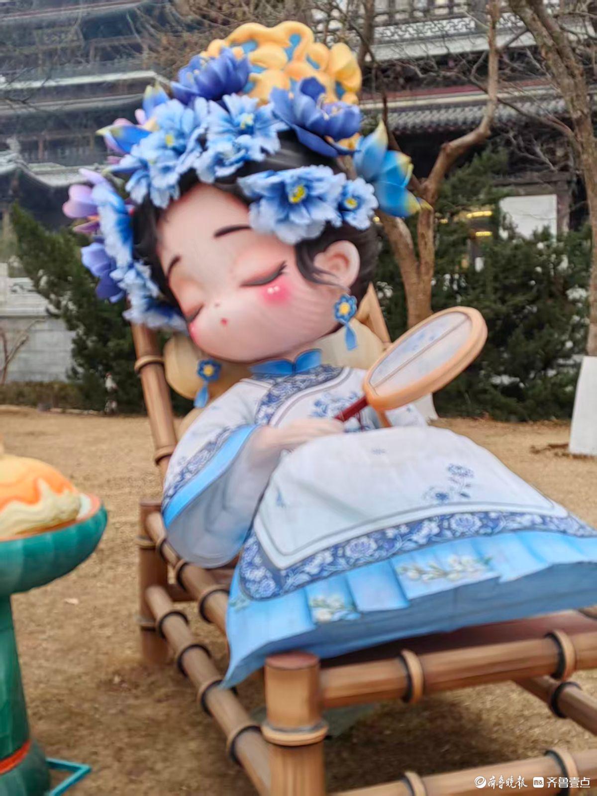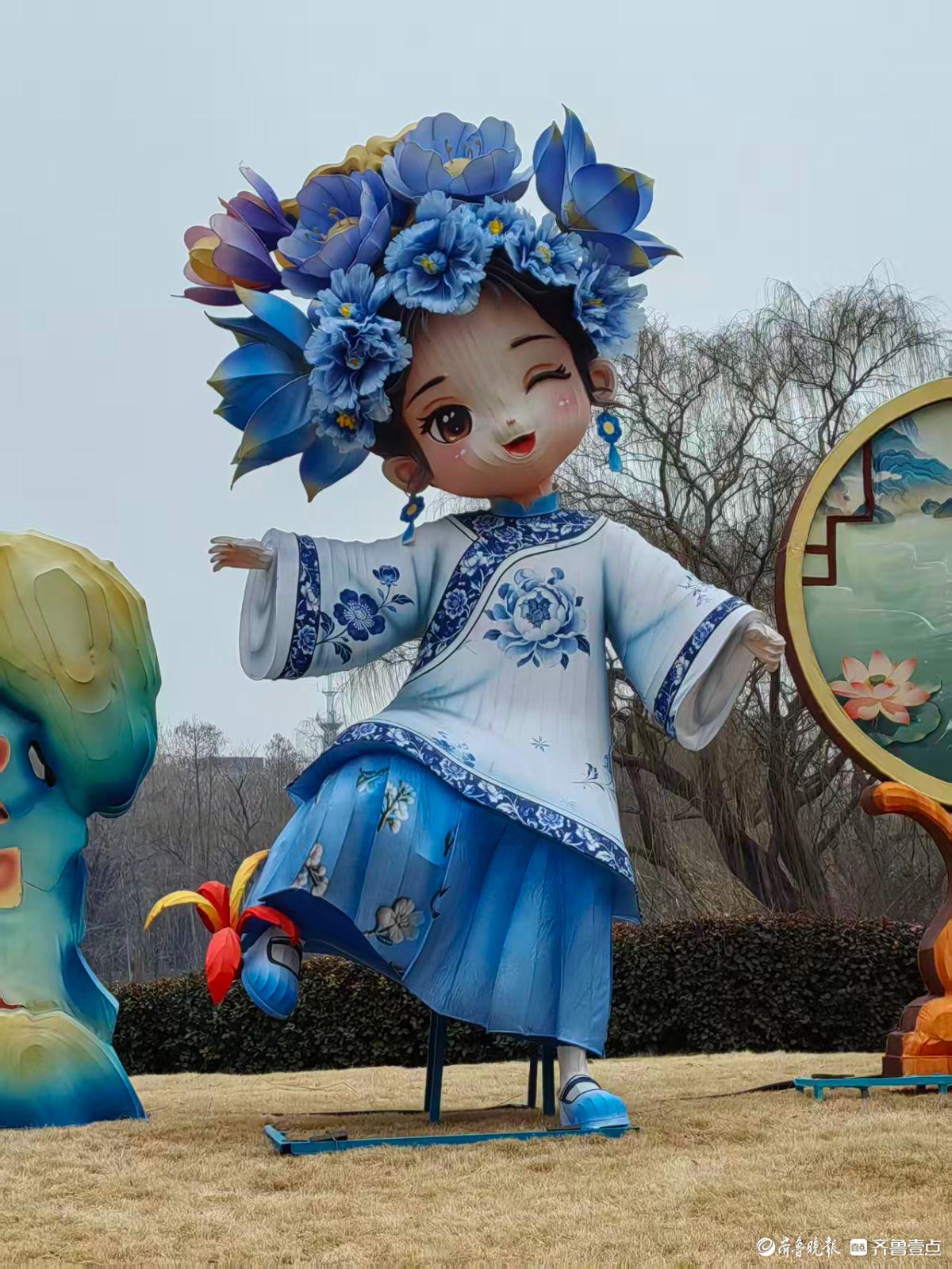1月24日,济南大明湖景区内,多组“Q版雨荷”主题花灯正式亮相。蓝白青花的典雅裙装,绒红暖帽的俏皮冬装相映成趣,雨荷或捧书静读,或提笔画虎,或对镜梳妆,憨态可掬的模样搭配茶壶,荷花等泉城元素,将传统人文底蕴与现代卡通趣味融合,引得市民游客纷纷驻足拍照。 王平 摄
