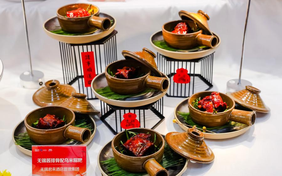 市集旁,“我是厨神”无锡寻味之旅活动热火朝天,5家本土餐饮企业的名厨们现场展示了各自的“王牌”菜品。“梁溪脆鳝的特点是甜中带咸、香脆爽口,水晶虾仁、脆皮银鱼则要细嫩多汁,5道菜品有传承、有经典,集中代表了锡帮菜的地方特色。”资深级注册中国烹饪大师、锡帮菜省级非遗传承人杨建兴现场讲解。
