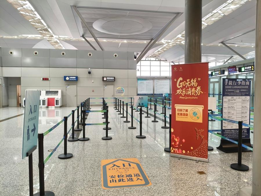 硕放机场内,“Go无锡”欢乐消费券标识抢眼