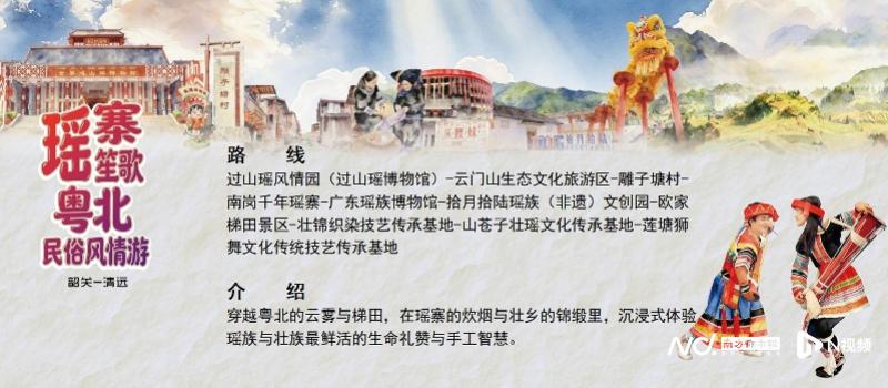 过山瑶风情园(过山瑶博物馆)-云门山生态文化旅游区-雕子塘村-南岗千年瑶寨-广东瑶族博物馆-拾月拾陆瑶族(非遗)文创园-欧家梯田景区-壮锦织染技艺传承基地-山苍子壮瑶文化传承基地-莲塘狮舞文化传统技艺传承基地