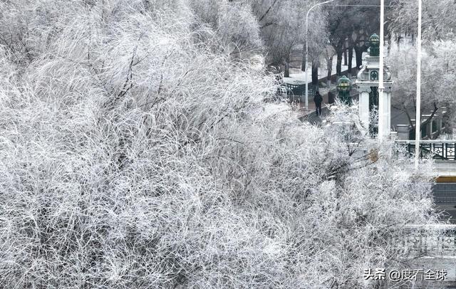 这场雾凇奇观的降临,恰逢腊八节这个承载着千年民俗的节点,让自然之美与人文温情在松花江畔悄然相拥。人们总说东北的冬天是凛冽的,是苍茫的,却不知这份凛冽之下,藏着自然最精巧的雕琢。何家沟入江口的雾凇,没有吉林雾凇岛的声名远扬,没有雪山雾凇的巍峨壮阔,却以最细腻的姿态,将低温与水汽的邂逅,酿成了专属于哈尔滨的冬日惊喜。它不张扬,却足以让每一个偶遇的人驻足屏息,在寒风中感受这份不期而遇的温柔。