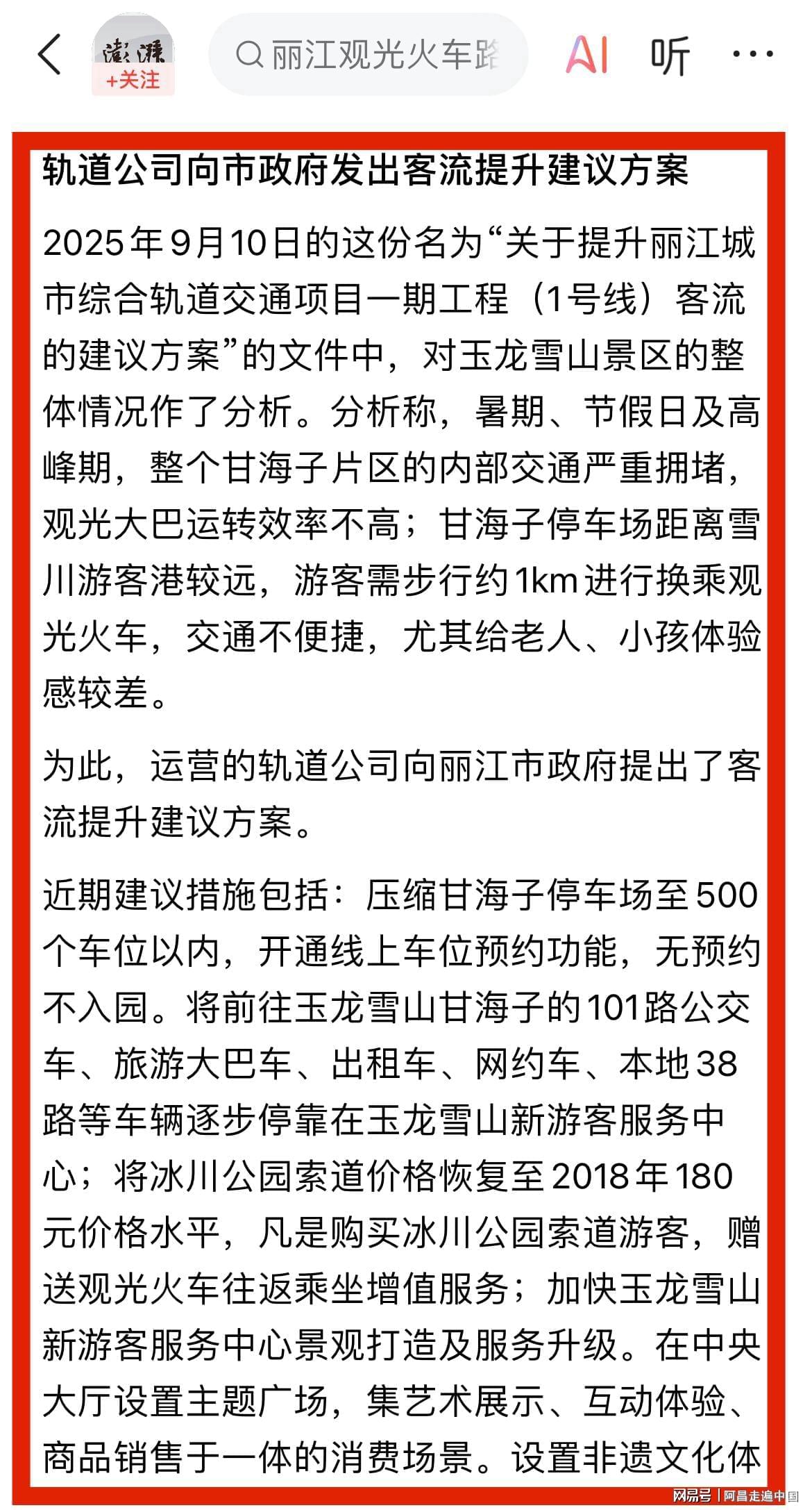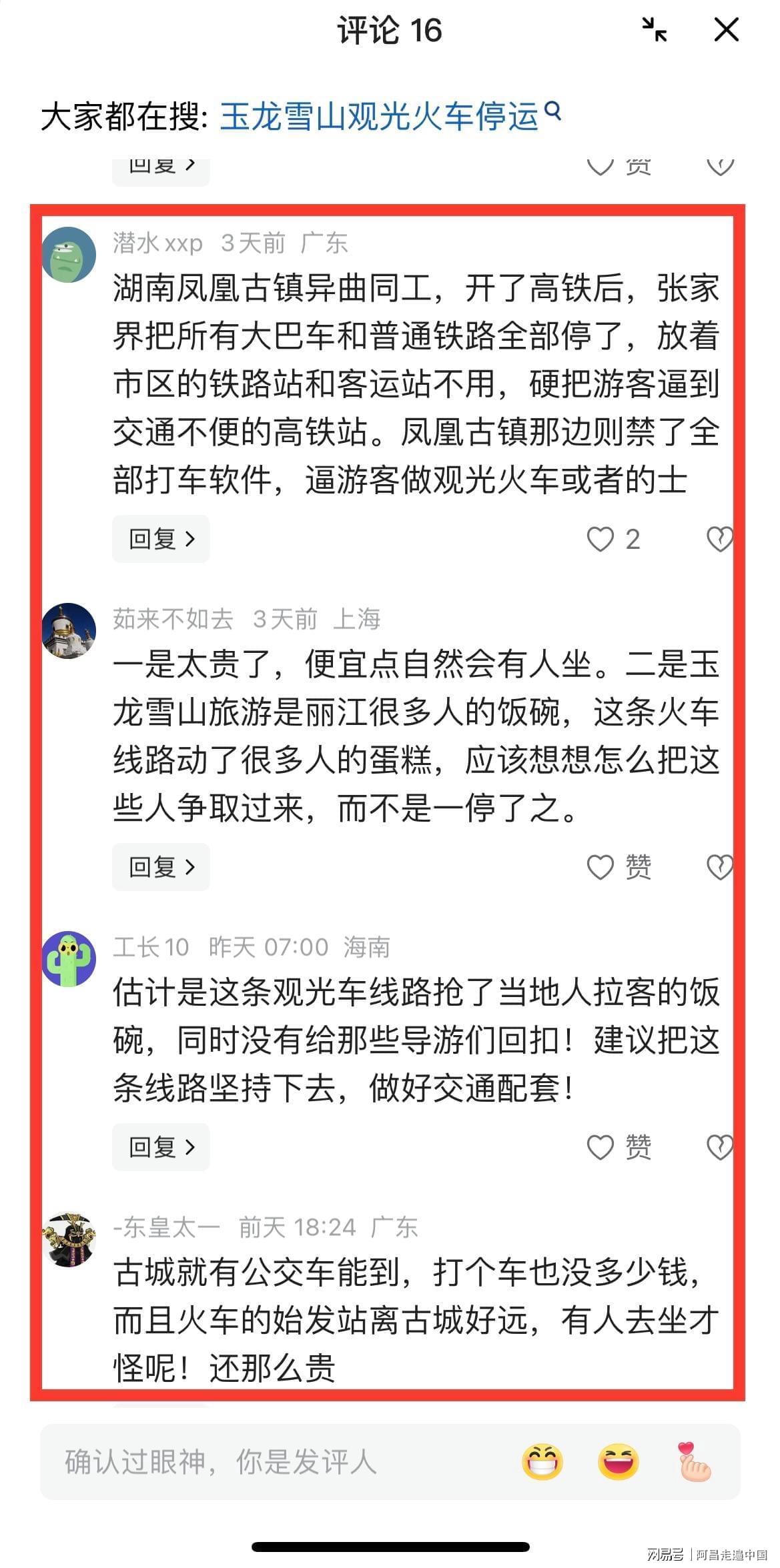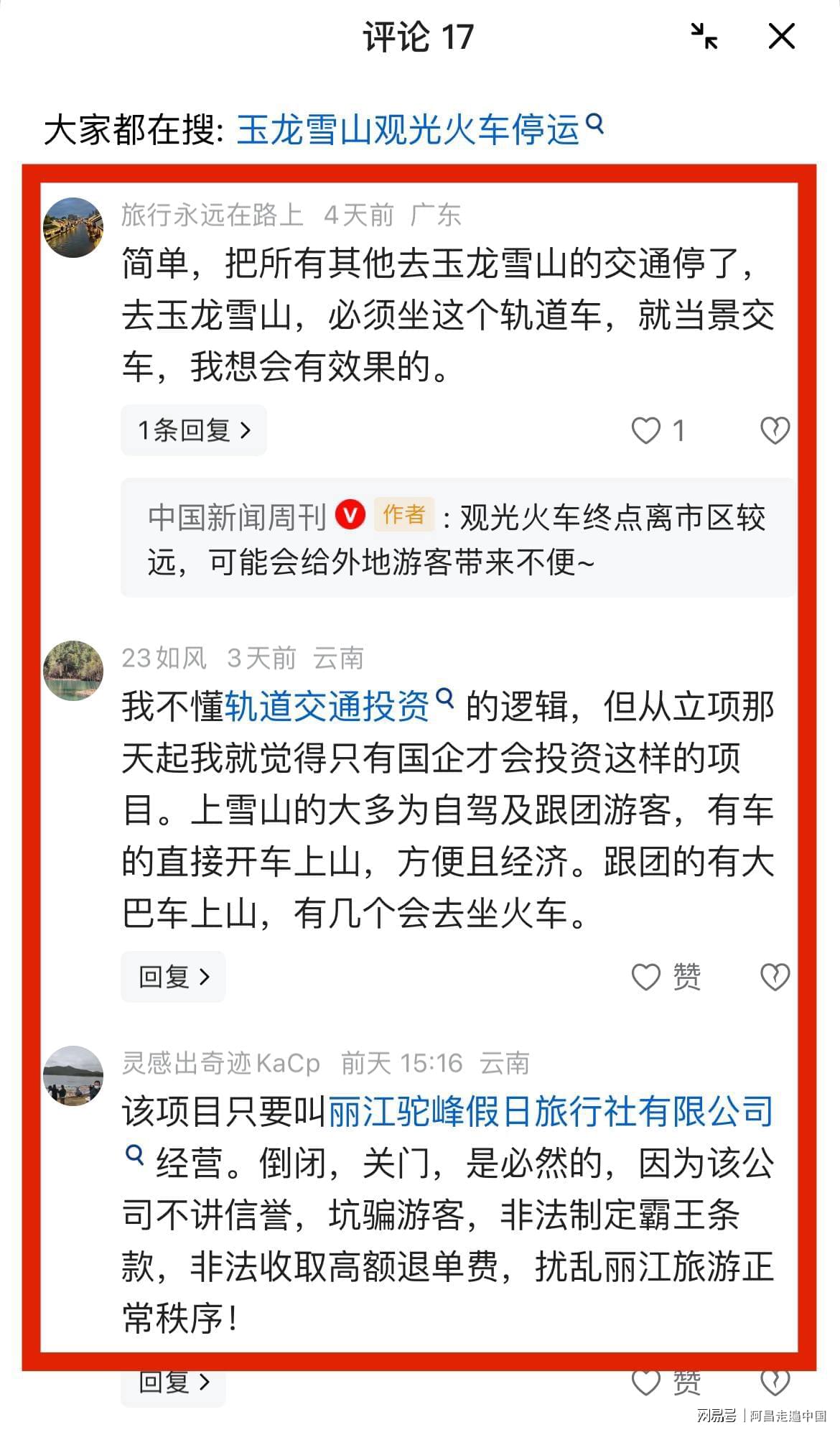 劳民伤财的文旅基建,号称全球第一观光小火车,当年在开工建设新闻是这样写的,全球最先进观光火车,连瑞士都没法比,我看了网上游客分享图片沿途20公里景色一般,1米9高观光玻璃门,没啥用,说实话,这个观光小火车票价单程50元,往返80元,如果拿建水小火车比起来,这个价格真不贵,建水小火车硬座往返120元,软座往返150元,建水小火车一直受游客青睐,建水小火车主要优点是他是百年米轨,沿途有国家重点文物保护单位双龙桥、相会桥古村落、终点站是著名古村落(团山村)历史意义厚重,丽江纯属于花费巨资打造一个运输游客快速区间车,投资时候评估是预计年接待游客164万人次,实际运营一年接待游客才9万人,并且说有一个汽车、公交站点距离上车点1公里,严重影响了游客选择,周边公交车又多,票价又便宜,游客自然选择打车或者坐公交车了,新闻周刊在回复网友一条评论说,丽江观光车主要原因不是缺游客,而是距离市区较远,路线太偏。