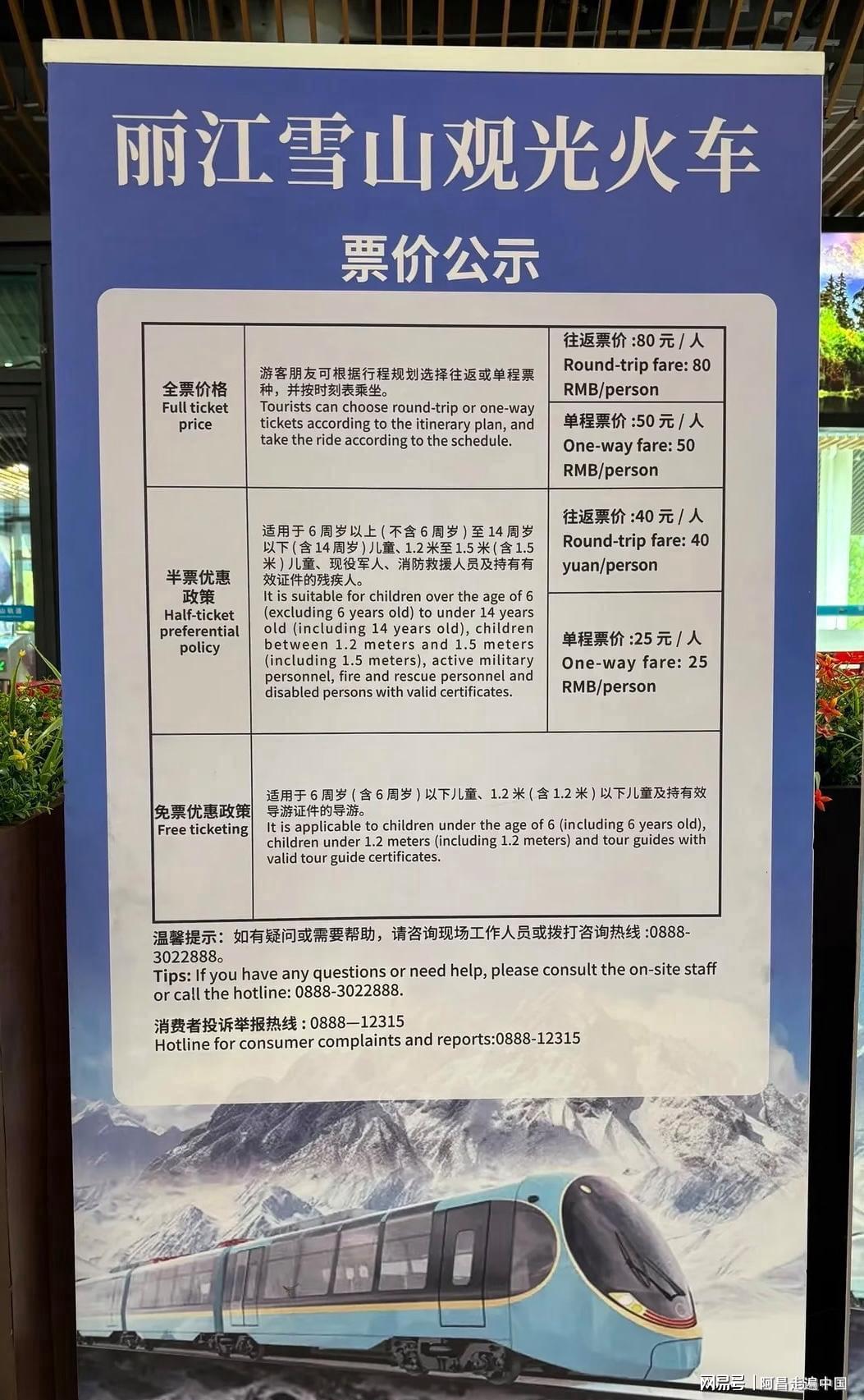 1、丽江观光小火车成人全票价,单程50元,往返80元,单程运输时间35分钟。
