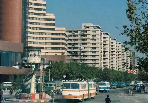 1988年拍摄的漕溪北路中山西路口交通岗亭及华亭宾馆。Bill Hawker 摄(图片来源:上海发布)