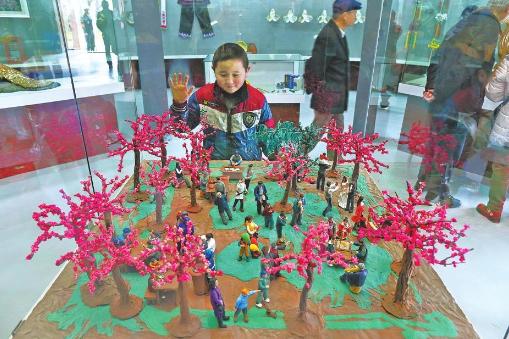 面塑非遗代表性传承人梁俊利的作品“圆通樱潮”面塑 开屏新闻记者王宇衡摄于2016年