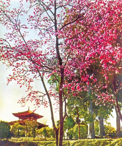 昆明的花事渊源已久。自明朝起,每年农历二月二十的“花朝”便是百花生辰的专属庆典。明清时期的“花朝会”上,少女们以红线系花枝为百花“祝寿”,全城休市,踏青寻芳,歌乐相随。清光绪年间,圆通山成为登高赏景的幽胜之地,解元施汝揆《锦缠道・螺峰即景》有言“照眼花明,好一派春光透。醉东风,千红齐凑……”用传世的诗意定格这份浪漫。