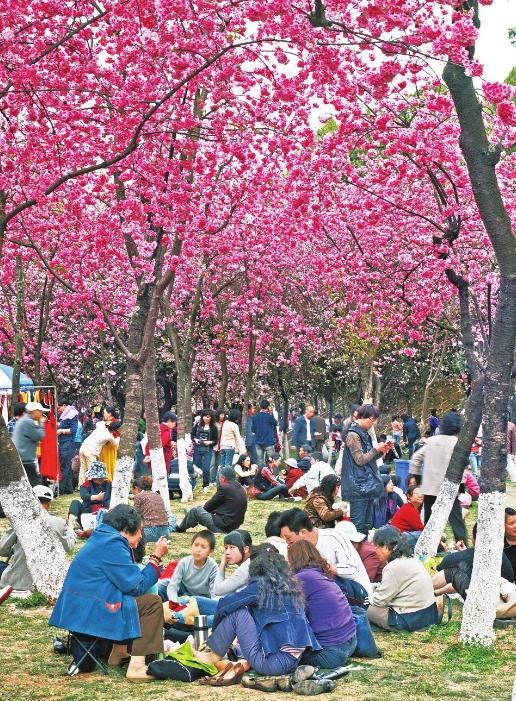 市民、游客在樱花树下赏樱休闲 刘建明摄于2009年